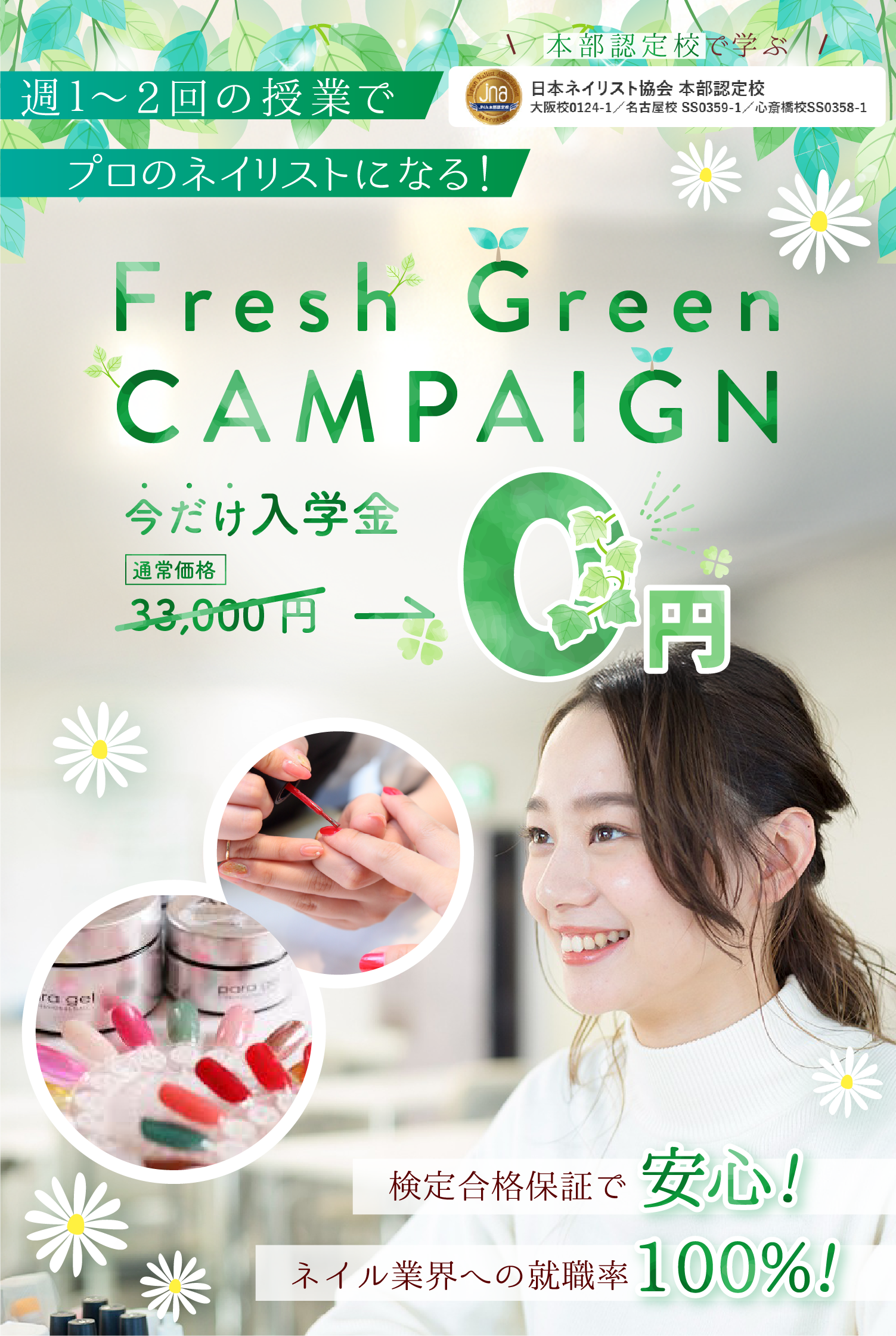 日本ネイリスト協会 本部認定校 大阪校0124-1/名古屋校 SS0359-1/心斎橋校SS0358-1