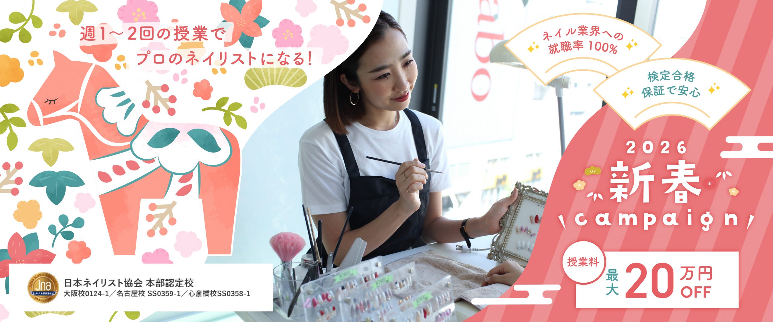 日本ネイリスト協会 本部認定校 大阪校0124-1/名古屋校 SS0359-1/心斎橋校SS0358-1