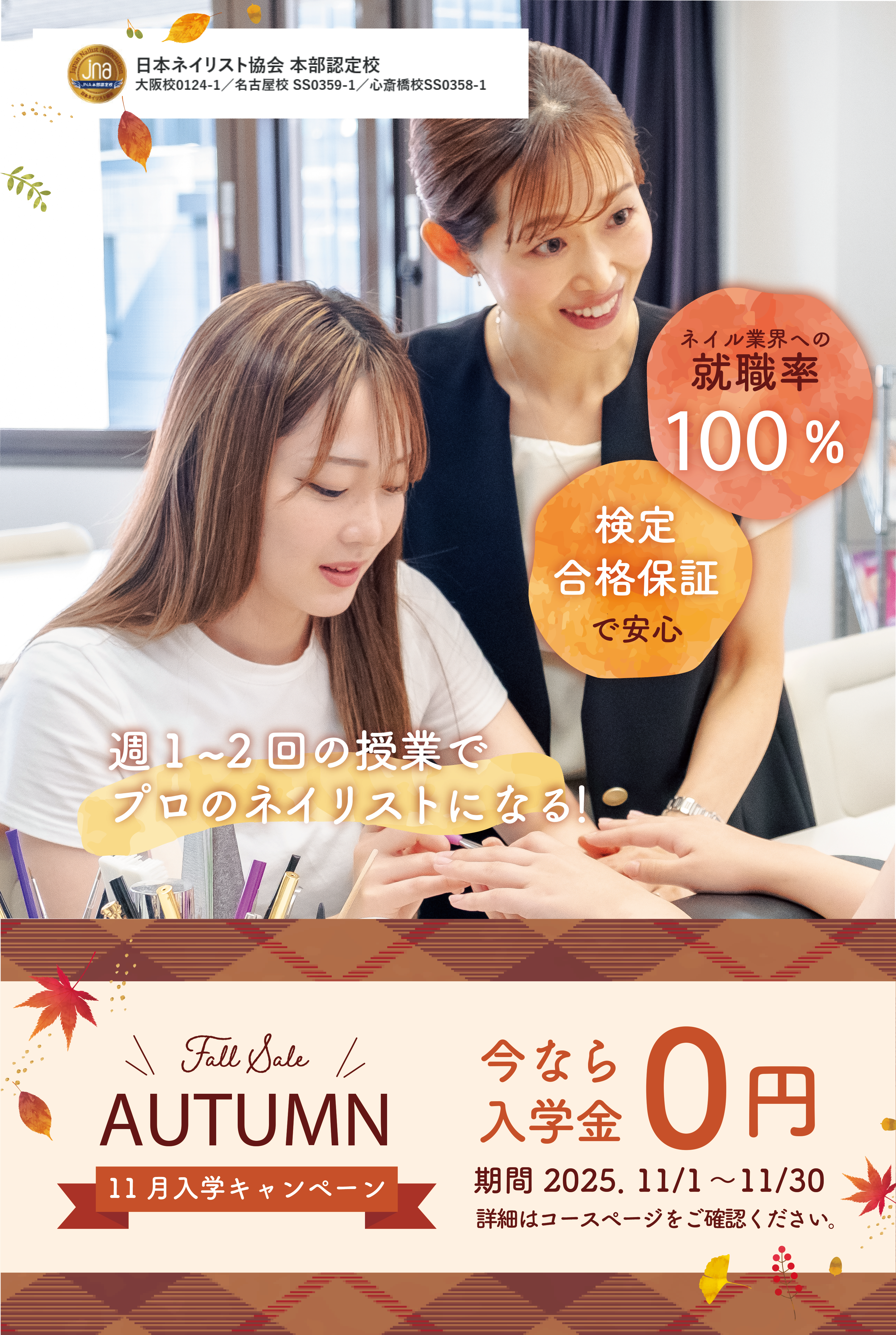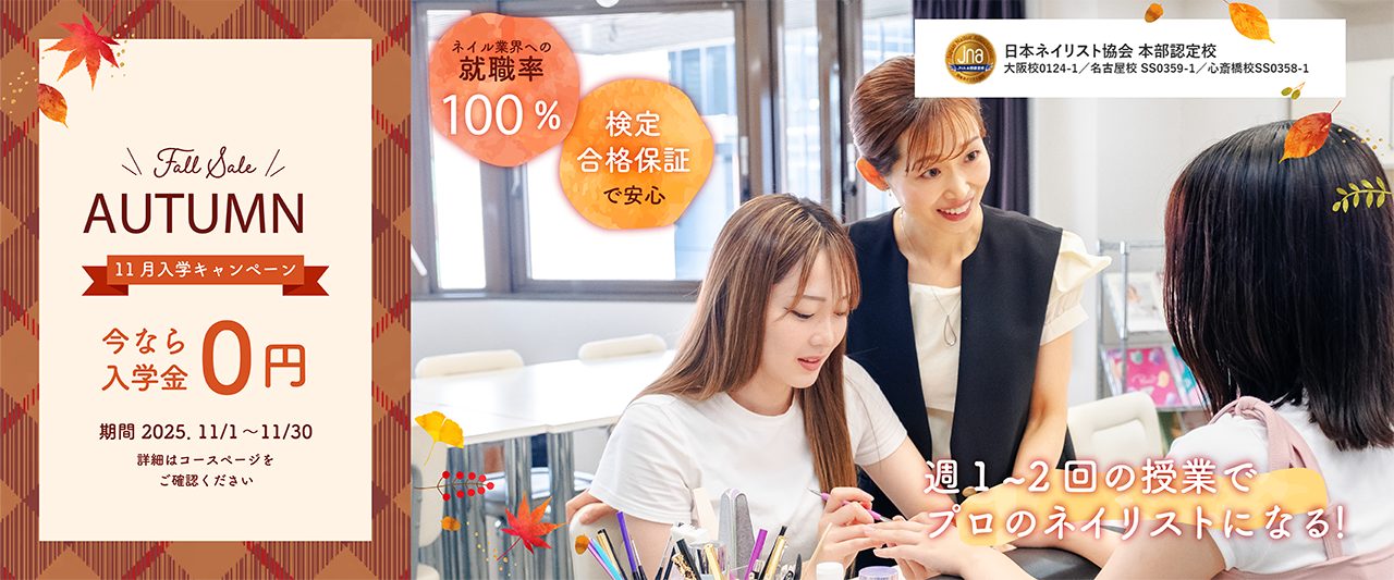 日本ネイリスト協会 本部認定校 大阪校0124-1/名古屋校 SS0359-1/心斎橋校SS0358-1