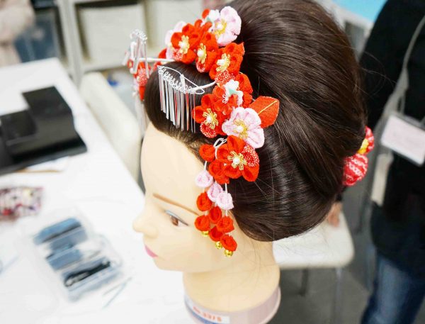日本の伝統的な髪型である日本髪それを、現代風にアレンジした新日本髪を学びました。